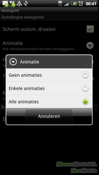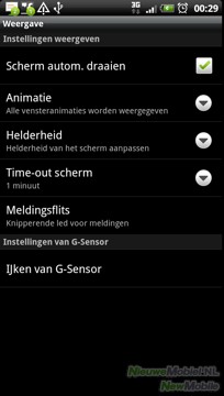 Qua instellingsmogelijkheden is de keuze beperkt. Het blijft bij de auto-rotate-functie, schermanimaties, helderheid en de time-out van de schermverlichting.