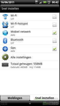 Wat betreft verbindingen laat de Sensation geen steekjes vallen. Alles werkt goed en een verbinding is snel ingesteld. Voor WiFi is er via de geavanceerde opties de mogelijkheid om prestaties te verbeteren, mocht de verbinding niet helemaal stabiel zijn. Mooi is verder dat de verbindingen ook snel in- en uitgeschakeld kunnen worden door de systeembalk naar beneden te slepen en voor het tabblad snel instellen te kiezen.