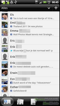 De contactenlijst van HTC Sense vormt een mooi overzichtelijk geheel, dat informatie kan halen uit verschillende bronnen. De contactpersonen zijn vanzelfsprekend alfabetisch gesorteerd met, indien beschikbaar, een afbeelding en eventueel een recente statusupdate van Twitter of Facebook. Dit is mogelijk doordat gegevens van contacten gesynchroniseerd kunnen worden met e-mailaccounts, Facebook, Twitter, Whatsapp SIM-kaart en telefoongeheugen.