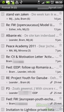 Voor Gmail is de standaard Gmail-applicatie vanzelfsprekend het geschiktst. Voor andere accounts, zoals Exchange ActiveSync, Yahoo!, Hotmail enz. is er de mail-applicatie van HTC. Wanneer mogelijk worden nieuwe berichten naar het toestel gepusht. Voor andere gevallen moet een updatefrequentie worden ingesteld. Meerdere accounts kunnen toegevoegd worden en deze kunnen gescheiden of gegroepeerd weergeven worden. De HTC-applicatie heeft wel moeite met HTML-berichten.