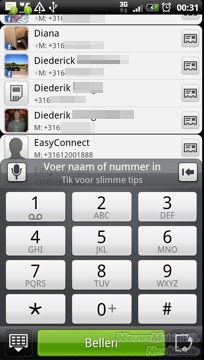 Een telefoongesprek starten met de Sensation gaat eenvoudig via de snelkoppeling naar de telefoonfunctie onderin het dock op de startschermen. Met behulp van smartdial is de gewenste contactpersoon snel gevonden. Jammer genoeg komen bij het zoeken zowel telefooncontacten als SIMcontacten in beeld. Om dit te ontlopen kan een persoon ook opgezocht worden in de contactenlijst. Door op de contactfoto te drukken kan de beloptie geselecteerd worden.