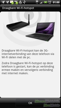 Het toestel kan ook als draadloze WiFi-hotspot fungeren. Op deze manier kan bijvoorbeeld een laptop via een WiFi-verbinding gebruik maken van het mobiele internet van de telefoon.