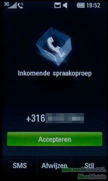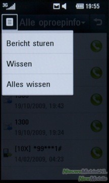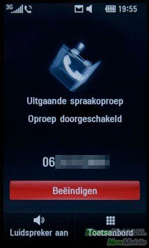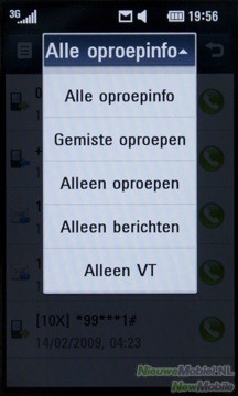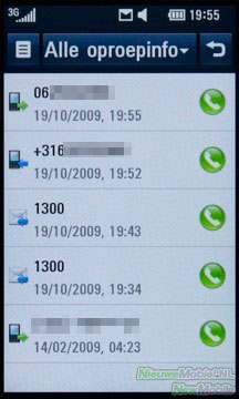 Door op het groene telefoontje te drukken kom je bij de nummerkeuze. Hier kan je met behulp van het alfanumerieke toetsenbord, contacten vinden door een cijfer te kiezen. De contacten met dit cijfer in hun telefoonnummer worden dan in een dropdown menu weergegeven. Bij oproepinfo is op te vragen hoe lang er is gebeld en met wie. Naast alle oproepinfo, kan je hier ook alleen de gemiste oproepen, verzonden sms’jes en de gebelde oproepen in een overzicht opvragen.