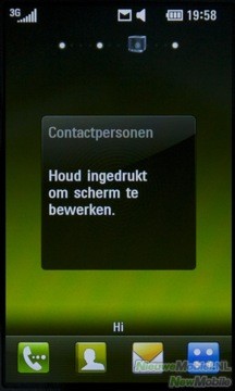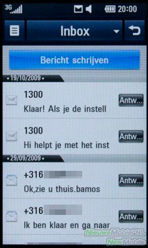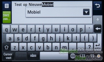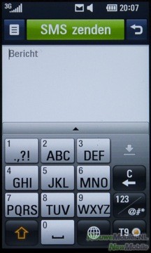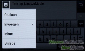 Een nieuw bericht kan geopend worden in het berichten menu of met een snelkoppeling in het Snelkoppelingen scherm. Het schrijven van een bericht kan op twee manieren, door middel van het touchpad of het touchscreen. En eigenlijk is geen van tweeën écht fijn. Het touchpad heeft veel gewenning nodig, want doordat het hele oppervlak egaal is voel je geen verschil bij de toetsen. Hetzelfde geldt wanneer je één toets twee keer achter elkaar indrukt, er is geen ‘klik’, geen gevoel dat je de toets ook daadwerkelijk hebt ingedrukt. Dit zorgt ervoor dat, zeker in het begin, het typen van een bericht met het touchpad zeer frustrerend kan zijn. Gelukkig is het wel een kwestie van gewenning en na enige tijd zal het typen wel beter gaan. Dit is helaas niet het geval bij het touchscreen, want deze is gewoon niet nauwkeurig genoeg om foutloos een bericht te schrijven. Wanneer je de telefoon bij het schrijven van een bericht kantelt, komt er een QWERTY toetsenbord tevoorschijn op het touchscreen. Helaas zitten de toetsen wat krap op elkaar, waardoor je door de onnauwkeurigheid van het scherm, regelmatig een verkeerde toets indrukt. Ook het verplaatsen van de cursor is lastig en werkt niet altijd even goed. Wanneer de gebruiker zijn vinger op het scherm houdt, is het mogelijk om nauwkeuriger de cursor te verplaatsen. Dit komt doordat er een iPhone-achtige inzoom boven je vinger te zien is. Dit werkt wel prima. Verder kan je nog kopiëren en plakken, maar eerlijk gezegd werkt dit voor geen meter. Het is heel lastig om een of twee woorden te selecteren die je wilt kopiëren.