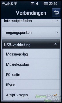 De LG Crystal onthoudt netwerken, dus invoeren van de inlogcodes en wachtwoorden is maar één keer nodig. Hierna maakt de telefoon bij het inschakelen van WiFi automatisch verbinding met het netwerk. Via microUSB kan worden gekozen uit: massaopslag, muziekopslag, PC Suite en iSync (voor Mac OS X). Verbinding maken via deze weg was geen enkel probleem. Ook wordt TV-Out ondersteunt door de Crystal. PAL en NTSC worden beiden ondersteunt, dus dit zou niet voor problemen moeten zorgen. Maar je moet wel een TV-Out kabel aanschaffen.
