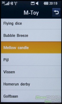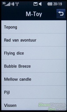 Er zitten in totaal 7 spelletjes op de LG Crystal. Al deze spelletjes zijn spelletjes die op je moet spellen door je telefoon te bewegen. Zogenaamde ‘motion-based’ spelletjes. Niet al de spelletjes zijn de moeite waard om toe te lichten, aangezien ze nogal simpel van aard zijn.