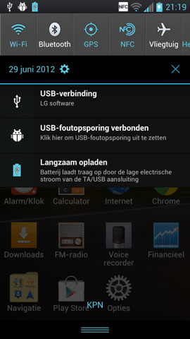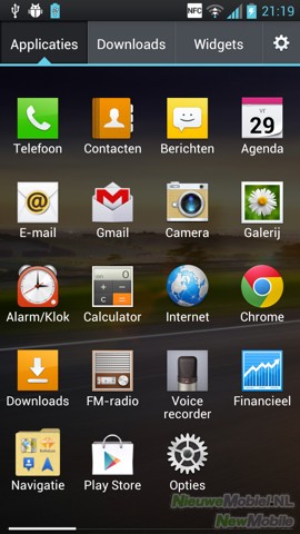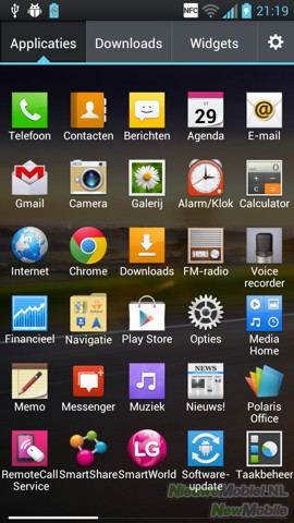 Stond de Galaxy S III nog boordevol applicaties, LG pakt het iets meer bescheiden aan. En dat is wat ons betreft een pluspunt want het wordt er een stuk overzichtelijker van. En het doet niet af aan de standaard mogelijkheden wanneer je hem uit de doos haalt. Naast de voor Android gebruikelijke apps treffen we nog aan; Media Home, SmartWorld, Backup en Applicatie manager.