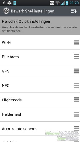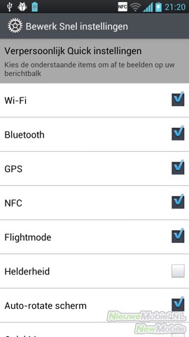 Het notificatiescherm is grotendeels die van Ice Cream Sandwich zelf, met enkele toevoegingen. De snelkoppelingen bovenaan om bijvoorbeeld WiFi aan of uit te zetten is helemaal naar eigen smaak in te delen. Wil je hem bijvoorbeeld helemaal leeg hebben, dan is dat geen probleem.