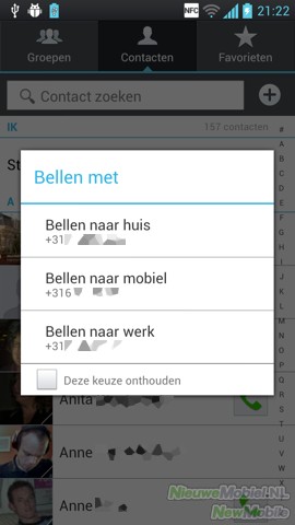 Juist vanwege die eerder genoemde twee microfoon is bellen met de Optimus 4X een erg aangename bezigheid. Het geluid is lekker helder al mocht het volume wel net iets harder. Enig puntje van kritiek; je kunt vanuit de bel-app weliswaar via een tabblad bladeren in je contacten, maar vanuit contacten kun je niet in de bel-app komen.