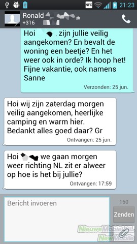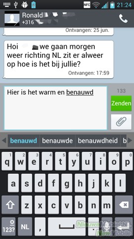 Over dit onderdeel gaan we weinig woorden vuil maken. Berichten versturen gaat met de Optimus 4X zoals het moet; gewoon goed. Ook op dit gebied heeft LG weinig veranderd aan het standaard Android en als het al wat anders heeft gedaan is het verbeteren. Al is het lichtjes. Zo zit rechts bovenin de conversatie een telefoon-icoontje voor het geval je toch beter kunt bellen. Het toetsenbord is van LG en maakt vrijwel hetzelfde geluid als de iPhone. Het functioneert echter prima. Wel hebben ze relatief veel toetsen gepositioneerd waardoor sommige wat klein zijn. Verder zijn ook hier enorm veel instellingen denkbaar. Zo is er bijvoorbeeld Shape Writer die ongeveer hetzelfde werkt als Swype. Met één uitzondering; hij geeft soms hilarische suggesties. Als je niet enorm secuur bent maakt hij de vreemdst mogelijke woorden. Zo maakt hij van het woord "een" regelmatig "Eto'o". Wij zien de overeenkomst niet echt.