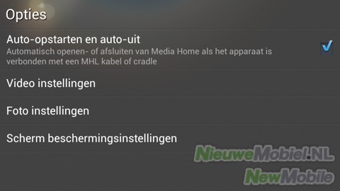 Media Home is een app waarin al je video's, fotos en muziek zijn terug te vinden en af te spelen. Een aparte mediaplayer dus. Je kunt de app zo instellen hij direct opstart zodra je een MHL-kabel (Mobile High-Definition Link) aansluit op een HDTV.