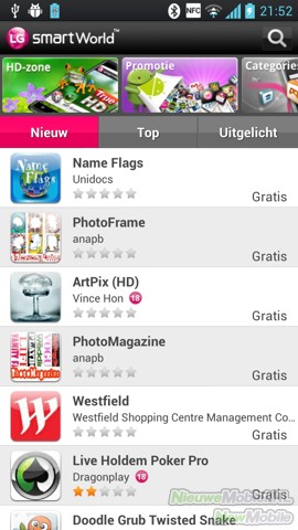 SmartWorld is een eigen applicatie winkel waar je buitenom de Play Store apps en games kunt downloaden. Voorwaarde is wel dat je een LG-account aanmaakt.