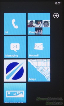 Het menu is onder te verdelen in het startscherm en een alfabetische lijst van programma’s. Het startscherm is op de roepen door op de fysieke menuknop onder het scherm te drukken, staat het scherm echter uit dan moet eerst de schermblokkering uitgezet worden voordat op de menuknop gedrukt kan worden. Het startscherm bestaat uit grote tegels en is naar wens in te richten door onderdelen van de alfabetische lijst naar het startscherm te sturen. De tegels van de SMS- of e-mailprogramma’s geven informatie over de binnengekomen berichten.