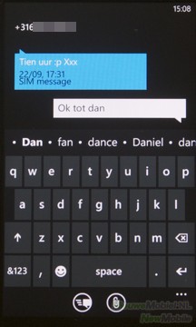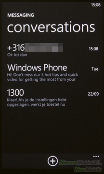 Windows Phone 7 geeft het toestel genoeg mogelijkheden om berichten te versturen. Als eerste is er de tegel Messaging waaronder de SMS- en MMS-functie schuilgaat. Als er na het typen van een SMS een bijlage aan het bericht wordt toegevoegd, dan wordt het automatisch een MMS. Er hoeft dus geen andere optie gekozen te worden om te MMS-en. De inbox bestaat uit een lijst met contactpersonen. Wordt hierop geklikt, dan worden de berichten overzichtelijk weergegeven als een lijst met tekstballonnetjes.