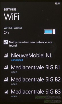 WiFi is een heel ander verhaal, ook dit is in het menu aan en uit te zetten maar in tegenstelling tot Bluetooth werkt WiFi als een trein. Het verbinden gaat erg snel en gebruikte netwerken worden onthouden, komt het netwerk opnieuw binnen bereik dan wordt er automatisch verbinding gemaakt.