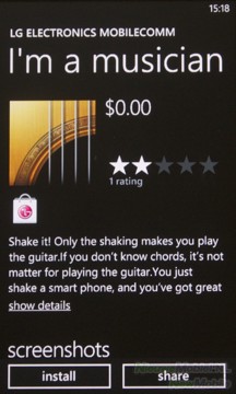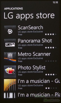 Via de Marketplace komen we in de online winkel waar we apps, games en muziek kunnen kopen. Helaas zijn er nog niet veel nuttige of interessante apps voor Windows Phone 7 te downloaden, om met andere systemen te kunnen concurreren moet hier wel snel verandering in komen. De meeste apps hebben hetzelfde uiterlijk als Windows Phone 7 waardoor alles mooi bij elkaar past. Ook LG heeft een eigen kleine app store, maar met 6 toegevoegde apps kan deze zich natuurlijk niet meten aan andere app stores.