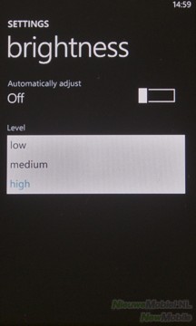 Erg veel opties om het beeld aan te passen zijn er niet, alleen de helderheid van het scherm is aan te passen, maar gelukkig is het beeld van zo’n goede kwaliteit dat er ook niet veel meer nodig is. Wel vinden we de schermhelderheid niet zo hoog kan als bij andere toestellen. Ook de kleur wit ziet er wat flets uit, maar dat valt alleen op zodra je er een andere telefoon naast legt.