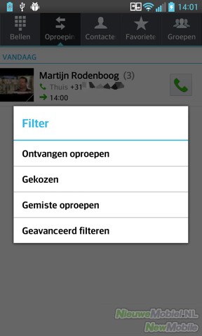 Een pluspunt is dat deze app, zoals alle andere vaste functionaliteiten eigenlijk, ruim is opgezet. Er hoeft nooit gezocht te worden naar een optie en er is geen gepriegel met te kleine toetsen. De oproepinformatie vind je in de telefoonapp. Je kunt ontvangen, gemiste en gekozen oproepen allemaal tegelijk laten weergeven, maar ook filteren.