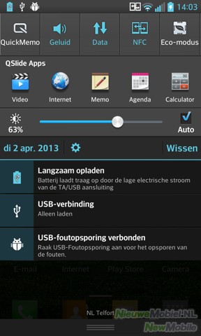 Opvallend is de uitgebreide dropbar waarin je niet alleen zoals gebruikelijk het geluid en de Wi-Fi aan kunt passen, maar ook bijvoorbeeld QuickMemo kunt activeren. Ook zie je een overzicht van de QSlide Apps, een interessante toevoeging. Deze apps kun je openen ‘bovenop' de app waar je al mee bezig bent. De dropbar is dus een volwaardig onderdeel van het menu geworden.