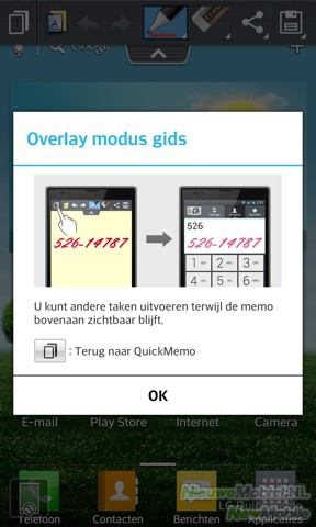 LG kondigde in augustus aan vooor de Optimus L-serie met een nieuwe app te komen: Quickmemo. Dat is een ontzettend handige toevoeging die slim gebruikt maakt van de hoge gevoeligheid van het scherm. Als je de volumeknop indrukt opent de QuickMemo-app, waarmee je met je vinger hetgene wat je wil onthouden op het scherm kunt schrijven.