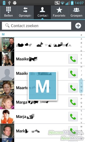 De tabbladen in de app kun je ook aanpassen, zodat groepen of favorieten wel of niet weergegeven worden. Een extra die erg goed van pas kunt komen tijdens het bellen is QuickMemo. Hierover vertellen we later meer.
