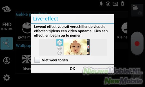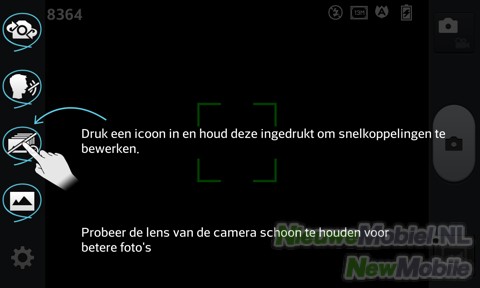 De gebruikelijke cameraopties zijn hier allemaal te vinden: flitser, sluitertijd en timer, helderheid, focus, formaat en zoom kun je aanpassen, en er zijn verschillende scènemodi (normaal, portret, sport, zonsondergang en nacht). Je kunt de foto's op verschillende manieren bewerken, bijvoorbeeld door ze een filter te geven of er met QuickMemo iets bij te tekenen. Met de ‘smart shutter' kan het toestel verder foto's maken voor jijzelf het doet, en je kunt zelfs alsnog foto's nemen van gemiste momenten. Andere opties zijn het aanpassen van de ISO-waarde en de witbalans, geotaggen en iets wat ‘beauty shot' heet: een feature voor de interne camera, waarmee de gefotografeerde ‘meteen mooier wordt'. Eerlijke gezegd zagen we het verschil niet direct. Gemaakte foto's kun je, als je er eenmaal tevreden over bent, delen via berichten, Bluetooth, FileShare, e-mail, Google Plus, Memo en Picasa.