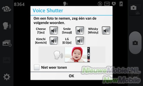 Zowel de foto- als de filmcamera zitten vol opties. Eerst de 13.0 Mpixel fotocamera: op het gevaar af in herhaling te vallen, de kleuren van de foto's zijn prachtig helder en scherp. Het valt wel op dat de kwaliteit van de foto's die we 's nachts of bij schemering maakten, aanmerkelijk slechter is. Dat is natuurlijk logisch, maar het gat was wel erg groot. De foto's kun je maken via het touchscreen of met de volumetoets, die ook als cameratoets functioneert. Leuke gimmick: je kunt ook een woord kiezen, bijvoorbeeld ‘cheese', en dat werkt dan als voice command voor de camera.
