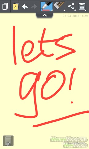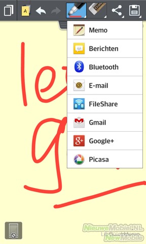 Je aantekeningen kun je overigens meteen delen via een MMS, Bluetooth, e-mail, FileShare of Picasa, en je kunt ze toevoegen aan de galerij of aan een notebook in de Notities-app.