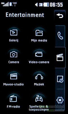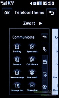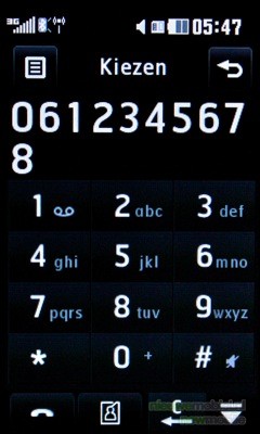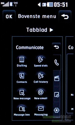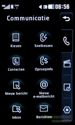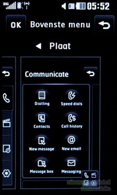 Het menu is volledig te bedienen door middel van het touchscreen. De middelste echte toets wordt gebruikt om één stap terug te gaan en met de rechter knop wordt het hoofdscherm meteen weer zichtbaar. Wanneer een optie in het menu wordt aangeklikt dan vindt haptic feedback plaats: er klinkt een klik, het toestel trilt (de sterkte is aan te passen) en er komt een rondje om de optie te staan, voordat deze geopend wordt. Het menu van de KF900 kan weergegeven worden in twee varianten: zwart en wit. Hoewel dit voor kleurliefhebbers misschien wat saai lijkt, misstaan deze kleuren het toestel niet.