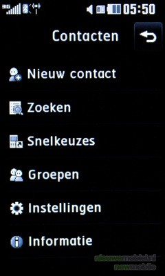Een contactpersoon wordt toegevoegd door het adresboek te openen op het beginscherm en bovenaan op nieuw contact te klikken. Vervolgens moet een keuze worden gemaakt waar de nieuwe contactpersoon wordt opgeslagen, op de SIMkaart of de telefoon. Dan verschijnt de optie om een afbeelding of foto aan een contactpersoon te koppelen. Naast de gebruikelijke gegevens zoals voornaam, achternaam en telefoonnummer(s) bestaat de mogelijkheid om een verjaardag van een persoon toe te voegen net als het privéadres, homepage, bedrijfsnaam, functienaam, bedrijfsadres en een memo. Hierdoor heb je direct alle gegevens over een persoon bij de hand in je telefoon. Op de telefoon kunnen 1000 contacten worden toegevoegd.