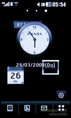 Het hoofdscherm van de LG PRADA II kent drie varianten waartussen geswitcht kan worden door met de vinger over het scherm te glijden; een regulier menu, een scherm met widgets en een scherm waarin alleen favorieten zijn afgebeeld.
