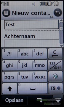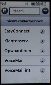 Het telefoonboek van de LG KC910 Renoir is vrij eenvoudig. Via de categorie communicatie in het menu en vervolgens het icoon voor contacten, wordt het adresboek zichtbaar en kan een nieuw contactpersoon worden toegevoegd. Contacten kunnen ook bereikt worden door op het beginscherm van de telefoon op het icoontje met een adresboek te drukken. In het overzicht van het adresboek is de bovenste optie bestemd voor het invoeren van een nieuw contactpersoon. Eerst moet worden gekozen waar de contactpersoon wordt opgeslagen: in het geheugen van de telefoon of op de Simkaart. Vervolgens kan het invullen beginnen: naast de naam en het nummer van de telefoon kan ook een e-mailadres worden toegevoegd. Het blijft bij deze standaardinformatie. Contactpersonen kunnen in groepen worden ingedeeld, en voor negen contactpersonen kan een snelkeuzetoets worden ingevoerd. Het maximum aantal in te voeren contactpersonen wordt niet vermeld. Het adresboek van deze LG is kortom alleen functioneel voor gebruik van de telefoon zelf, niet om veel informatie over personen in op te slaan.