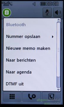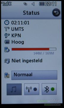 Een handigheidje is het bovenste knopje in het beeldscherm waar het geluidsniveau staat: er verschijnt een klein menuutje waar ‘status’ boven staat. Hierin is de tijd zichtbaar, het profiel van de telefoon kan snel ingesteld worden en Bluetooth en WiFi kunnen eenvoudig aan of uit worden gezet.