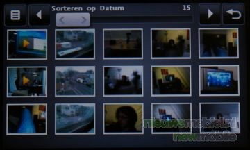 Geschoten foto’s kunnen bekeken worden via de Widget voor afbeeldingen, via de ‘galerij’ of via de map ‘mijn media’. De foto’s worden overzichtelijk afgebeeld. Door op één foto te klikken wordt hij vergroot weergegeven. Je kunt de foto’s voorbij laten scrollen door met je vinger over het scherm te bewegen. Als je stopt met bewegen blijft de foto in beeld. Foto’s kunnen worden gesorteerd op datum, type of naam. Ze kunnen een voor een worden weergegeven (wat verkleind) of per vastgestelde hoeveelheid tegelijk op één scherm (erg verkleind).