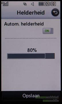 De helderheid kan door de gebruiker ingesteld worden (van 0 tot 100%). Automatisch staat de helderheid op 80%; dit is fijn werken. Vanaf 60% is de helderheid goed te doen, onder de 40 wordt het scherm te donker. De timer van de verlichting kan ingesteld worden op 10, 20, 30 of 60 seconden.