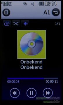De MP3 speler werkt eenvoudig maar goed. Door met je vinger over het scherm te glijden scroll je door de verschillende nummers. De speler bevat alle opties om optimaal van je muziek te kunnen genieten: zo bestaat de mogelijkheid om afspeellijsten te maken, titels op te slaan onder hun genre en te zoeken op een bepaald genre, naar een nummer, artiest of album. MP3’s kunnen door middel van de datakabel van een pc naar de telefoon worden overgezet.