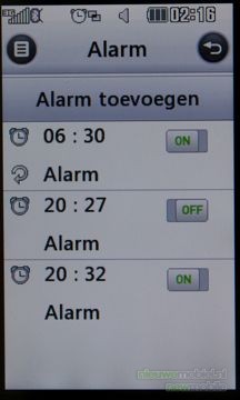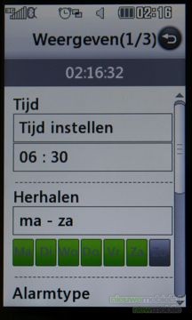 Een klein detail maar toch de moeite waard om te vermelden is het alarm. Dit is namelijk een verademing: geen harde piep die je 's ochtends wakker laat schrikken, maar (bij de juiste keus) een rustgevend melodietje waarmee je wakker wordt gemaakt. Je kunt verschillende tijden opslaan en ook aangeven op welke dagen die wekker af moet gaan. Als de wekker gaat kun je meteen kiezen of je wilt stoppen of sluimeren, en hoelang je wilt sluimeren (5, 10, 20 minuten).