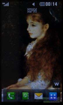 Net als de LG Secret beschikt ook deze LG over zogenaamde Widgets: deze zijn te bereiken door op het hoofdscherm op de ‘W’ te drukken, boven de menuknop. Er is bijvoorbeeld een Widget voor de klok, agenda, afbeeldingen, muziekspeler, radio, datum en tijd. Deze kunnen naar het scherm gesleept worden. Anders dan bij de LG Secret , waarbij deze Widgets als pluspunt van de telefoon worden beschouwd, zijn de Widgets op de LG Renoir erg groot uitgevoerd en daardoor niet handig. Het hoofdscherm wordt er zeker niet mooier en erg druk van, zeker wanneer voor de standaard achtergrond is gekozen met de dame van Renoir. De agendafunctie beslaat bijvoorbeeld driekwart van het scherm en hetzelfde geldt voor de memo-Widget. Dat werkt niet prettig.