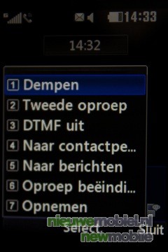 Het auto-rotate scherm (QVGA met 240 x 320 pixels) is een verademing om mee te werken. Alles is duidelijk en helder zichtbaar op het scherm van 2.4 inch. Het lettertype is overigens op formaat ‘klein’ groot genoeg om alles duidelijk in beeld te kunnen hebben. De kwaliteit van het beeld, 262.144 kleuren (18 bits) is erg goed. De helderheid van het scherm is instelbaar. Als de telefoon op stand-by staat, is het scherm als (donker) spiegeltje te gebruiken. Deze weerkaatsing kan ook een nadeel zijn, vooral buiten in de zon. Over het algemeen is het scherm ook buiten nog wel goed leesbaar.