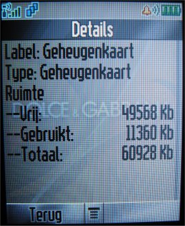 De gebruikte geheugenkaart in het toestel is een MicroSD. De kaart is kleiner dan een SIM-kaart. Gelukkig zijn er in de afgelopen periode grotere varianten op de markt beschikbaar gekomen en zijn meerdere fabrikanten overgestapt naar deze kaartsoort. Verder vindt men een datakabel en CD-rom met PC suite software aan boord van het pakket. Deze kan men gebruiken om data te synchroniseren.