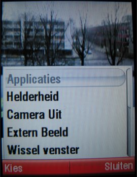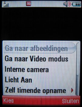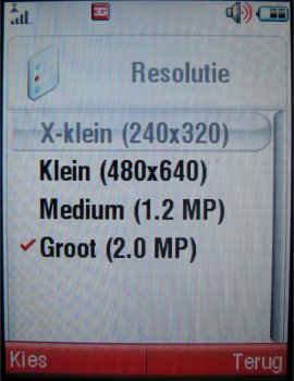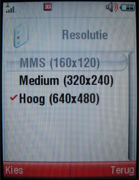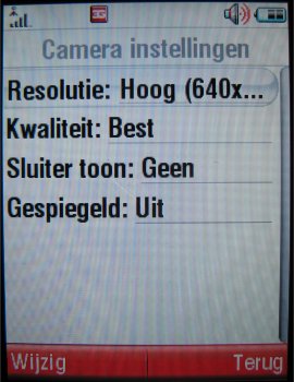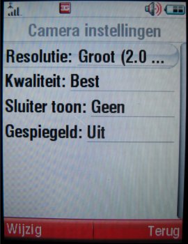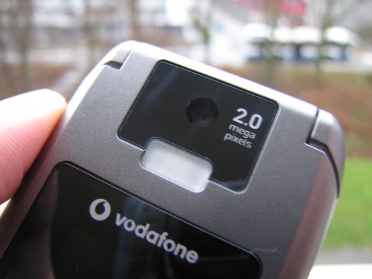 De camera op de achterzijde is een 2.0 megapixel camera dat wil zeggen dat deze een maximale resolutie heeft rond de 1200 x 1600 pixels, andere aanwezige resoluties zijn (1280 x 960, 640 x 480 en 320 x 240 pixels). Het toestel beidt daarnaast een groot aantal posities, zoals de kwaliteitopties (Goed, beter en best), de keuze uit vier sluitertonen, inschakelen van spiegeling, inzoomen (1x, 2x, 4x en 8x), soort belichting (Automatisch, Buiten (Zonnig), Buiten (Bewolkt), Binnen (Huiskamer), Binnen (Kantoor), Buiten (Nacht)), helderheid (-2, -2, 0, +1, +2) en stijl (Kleur, Zwart en Wit, Antiek en Negatief). Ook is er nog een zelfontspanner aanwezig met twee keuzes 5 en 10 seconden, kan er gekozen worden voor het opslagmedium en is er de mogelijkheid de erg goede macro modus in te schakelen. Deze maakt van een afstand van vijf centimeters nog zeer goede foto's.