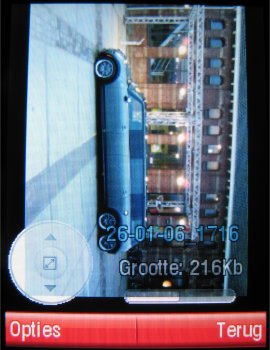 Nadat de video's en afbeeldingen gemaakt zijn kunnen deze worden bekeken in het foto album. Neem gerust de tijd wanneer vele foto's gemaakt zijn, want het foto album is enorm traag als het gaat om foto's op de geheugnkaart. Scrollen door de foto's gaat amper en ze openen kost nog meer tijd. Nee, de foto's bekijken kan het beste via een datakabel op de PC. Dit gaat vele malen sneller.