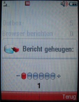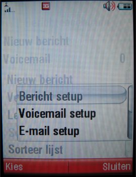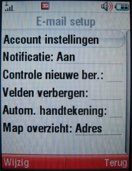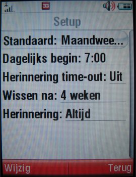 Alle instellingen kunnen onder setup aangepast worden. Hier kan het POP3/SMTP email account ingesteld worden en de geheugenstatus van het aantal berichten worden bekeken. Gelukkig geen maximum van 15 berichten, maar opslag van 100 berichten.