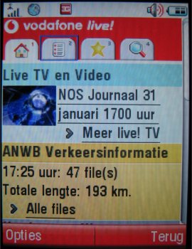 De Vodafone Live! UMTS portal bestaat een aantal mooie functies, die gebruikt kunnen worden door gebruikers. Het gaat hier dan om het downloaden van diverse content, zoals beltonen, JAVA games, het bekijken van allerlei leuke nieuwtjes en nieuws waar men zich op kan abonneren. De complete portal is sinds kort vernieuwd en biedt nu een doodeenvoudige manier van het vinden van de juiste functies en opties. Er zijn vier tabbladen die alle functies bevatten. Simpeler kan het niet!