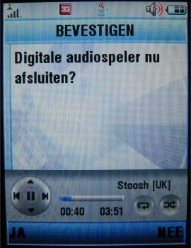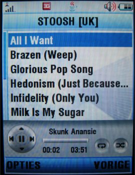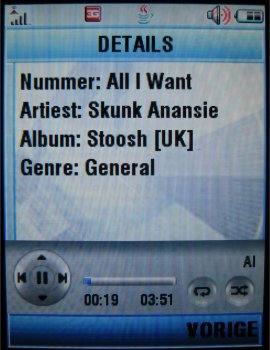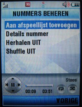 De speler werkt zoals iTunes en heeft zijn eigen icoon gekregen in het menu. Een nadeel is het feit dat de gebruiker niet de applicatie op de achtergrond kan laten draaien en dat na een gesprek de applicatie niet automatisch doorgaat met het afspelen van een audio bestand. De gebruiker zal zelf het bestand opnieuw moeten starten. Ook is er geen indicatie op het externe scherm en kan de speler niet bedient worden met de toetsen aan de buitenkant van het toestel. Hierin scoort de LG P7200 bijvoorbeeld beter.