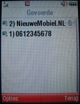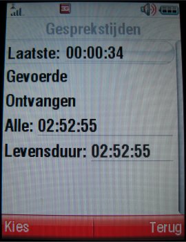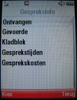 Gespreksoverzichten zijn weer te geven via het menuonderdeel 'Gespreksinfo'. Er wordt hier een eenvoudig overzicht van ontvangen oproepen, gemiste oproepen en gekozen nummers aangetroffen. Bovendien ontbreekt ook niet de verbruikte GPRS-data in dit overzicht, waarin in alle gevallen eventuele datum en tijd van het item niet ontbreekt. Helaas wist het toestel de laatstgebelde nummers als de batterij op is. Dat kan enorm onhandig zijn in sommige situaties.