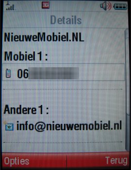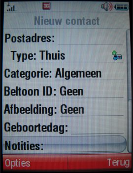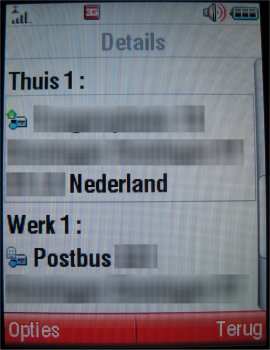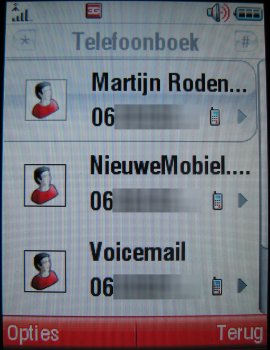 Contacten kunnen namelijk nu volledig ingevoerd worden. Voornaam, Naam, Roepnaam, Nummer, Mobiel nummer, Video nummer, Email adres, Postadres, Categorie, Beltoon, Afbeelding, Verjaardag, Notitie en Website adres kunnen toegevoegd worden aan een contact. Verder worden de contactpersonen weergegeven op lijst of afbeelding en kan men sorteren op naam of voornaam.