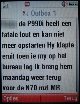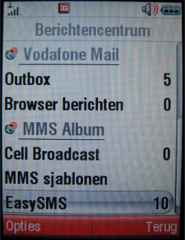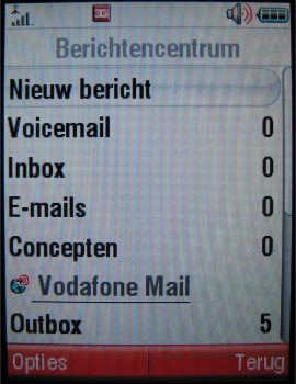 Al deze soorten messaging zijn terug te vinden bij 'berichten' in het menu. Zowel MMS, SMS als mailberichten komen terecht in één inbox. De SMS-editor werkt redelijk en de oude karakterteller die aftellende is verdwenen. Nu telt deze op, maar is het gevoel nog niet helemaal bevredigend. Men ziet namelijk nergens hoeveel berichten men al heeft getikt. Pas achteraf komt de melding hoeveel bladzijden het bericht is wat neer komt op het aantal SMS berichten dat men verstuurd. In het toestel zijn verder MMS en SMS sjablonen aanwezig die eenvoudig in een bericht toegevoegd kunnen worden.