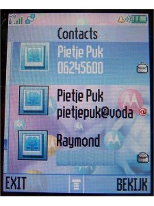 Het telefoonboek is uitgebreid voor een ‘standaard' telefoon. Dat wil zeggen dat men er meer in kan zetten dan een gewoon nummer. Men kan meerdere nummers toevoegen. Een voicedial invoegen. Verkort nummer instellen en een foto toevoegen aan de contactpersoon. Een emailadres toevoegen kan ook, alleen deze komt apart in de contactpersonenlijst te staan.