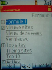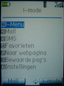 De menustructuur van de N341i is zeker niet verkeerd, maar in combinatie met het menu van I-mode is het af en toe wat onduidelijk. De twee standaardtoetsen die in relatie staan tot de knoppen onderaan in het scherm zijn nu gebruikt voor de I-mode contentdienst, maar eigenlijk is dit dubbel op! Daar komen we nog op terug.